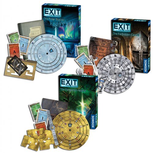 2. Exit The Game seerias on ilmunud palju mänge, millest meie lauale on jõudnud: The Secret Lab, The Abandoned Cabin, The Pharaoh`s Tomb, The Forbidden Castle, The Polar Station, The Forgotten Island.  Iga mänguga on kaasas juhiste leht, dekodeerimise ketas, mõistatuste raamatuke, konkreetseks mänguks vajaminevad lisa jubinad ja kolm kaardipakki (vihje-, mõistatuse-ja lahenduskaardid). Mängu mehhanism on hästi lihtne, ei pea olema inglise keele proff ning mulle eriti meeldib selle mängu mõistatuste raamat, mille puhul ongi mõeldud, et mängu lõpuks on seal osad leheküljed katki lõigatud, ära volditud või täis igasugu mõistatamiseks vajalikke märkmeid.  Ilmselgelt ei saa seda mängu mängida mitu korda, ent tegu on oma kvaliteetsete mõistatuste ja huvitavate teemade tõttu ühe meie lemmikmänguga. The Pharaoh`s Tomb oli meie jaoks üks kõige raskemaid. Lemmikuks on olnud mul The Secret lab ja The Polar Station. Aega on arvestatud 1-2h, mis enamasti ongi umbes nii meil ühe mängu peale läinud.