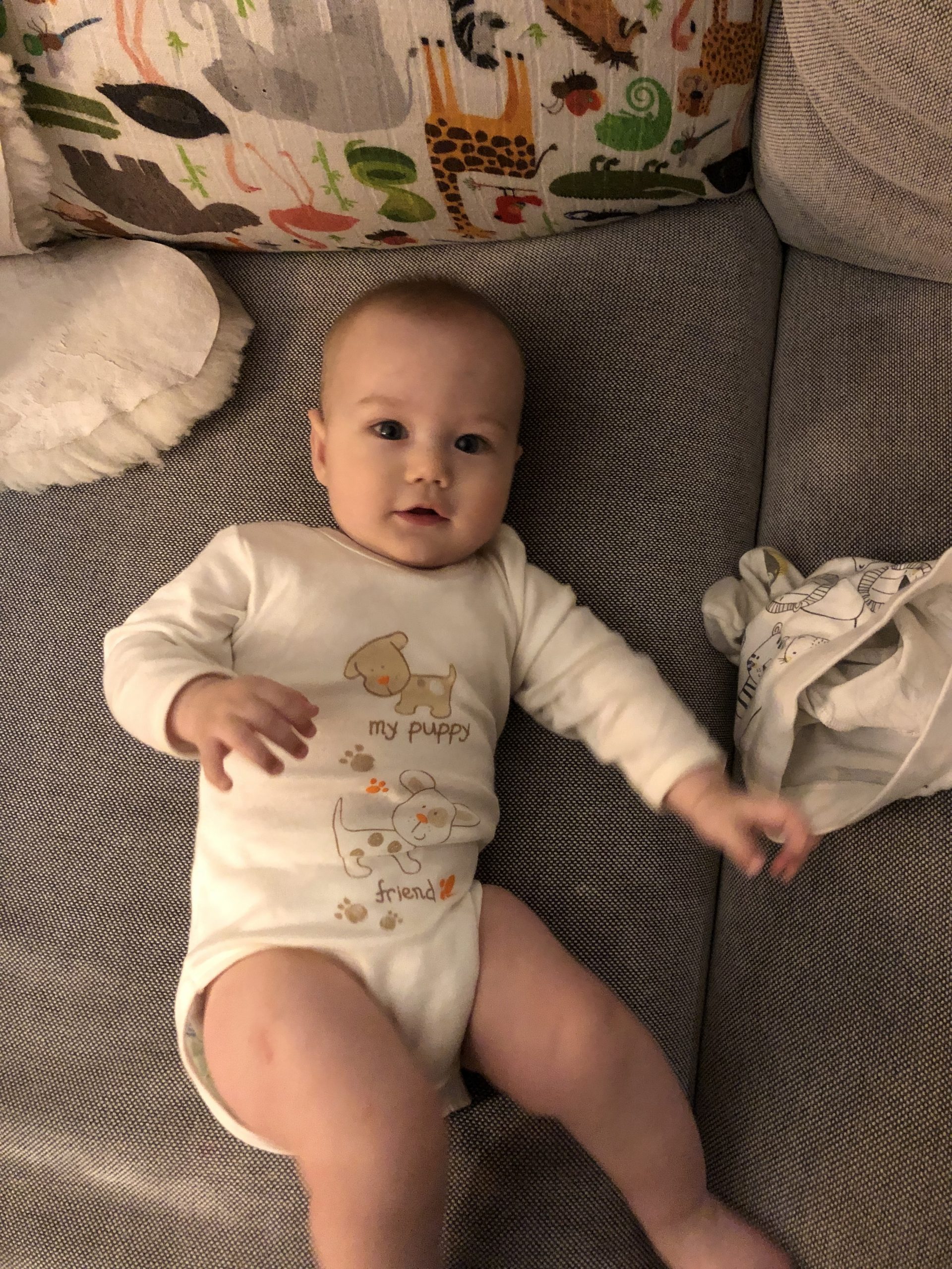 Detsembris eelistasin matil olles asju enda poole tõmmata ning kui see ei õnnestunud, siis ega ma väga kurb ei olnud. Kaugelt võis ka asju vaadata! Ja kui ma proovisin liikuda, siis enamasti õnnestus see pigem ümber enda telje. Aga mida aeg edasi, seda rohkem ärritab mind, kui ma ei saa seda mida ma tahan ja liikuda ma ju ei oska veel! See vihastas mind ning 95% sellel kuul kõhuli olles tegin käte-jalgadega lennukit ja hakkasin nutma. Teadsin, et siis võtab emme või issi mind sülle ja süles olles näeb maailma ikka PALJU paremini. Istuda ma toe najal ju oskan. Ükskõik kuidas, aga mitte kõhuli. Aga nagu ikka oma sünnipäeva lähenedes, ilmneb mõni uus oskus ja nii ka seekord. Avastasin, et tegelikult on võimalik täitsa edasi ka liikuda. See on täiesti minu leiutatud meetod ja meenutab enim ühe külje peal roomamist. Olen sellest ise päris vaimustuses, kuigi eks see vajab veel harjutamist, sest üle päeva unustas ära, et edasi liikumist oskasin.