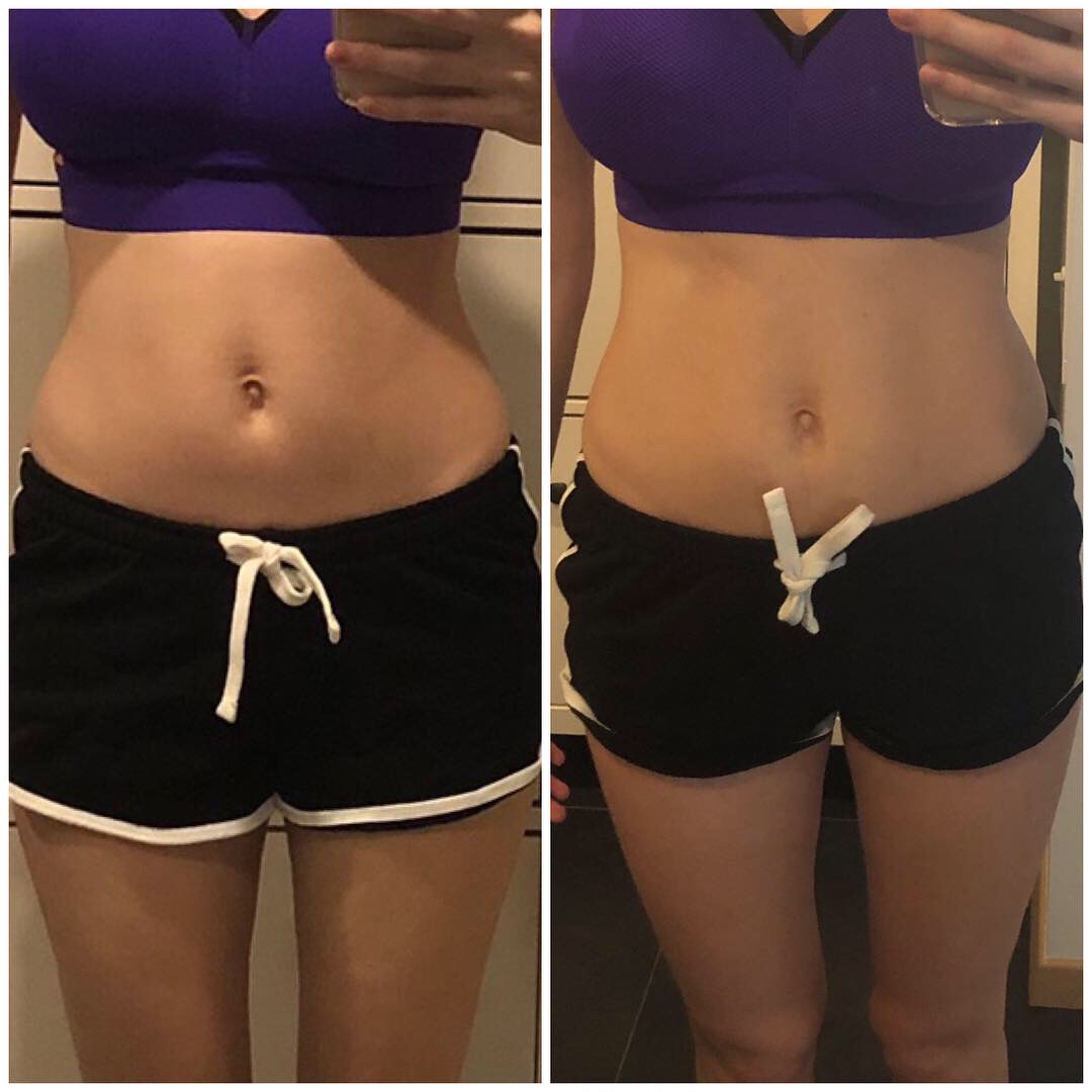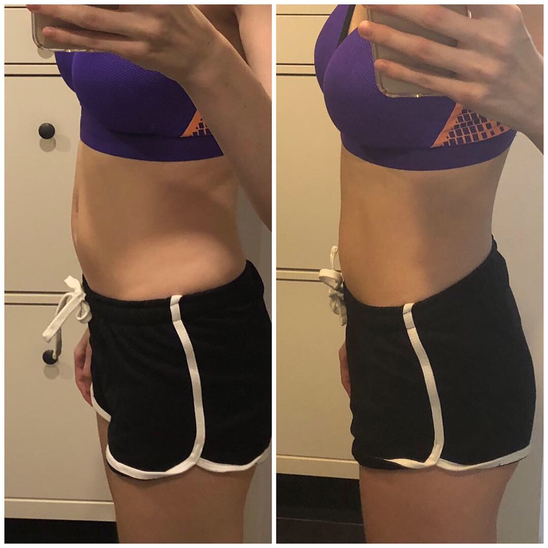 Mina alustasin kõigepealt kuu aega kestva eeltreeninguga, sest põhiprogrammiga algust tehes oleksin oma kehva vormi juures kohe otsad andnud. Esimesed trennid eelprogrammiski olid minu jaoks kohutavalt rasked, ma reaalselt karjusin ja nutsin. See oli NII raske! Kuigi tegin korralikult venitusi, siis kõik kohad jäid pärast trenni valusaks, aga nagu programm lubab, siis pärast kahte nädalat ehk siis kuute trenni tundsin ennast juba päris tugevana. Täitsa kohe ootasin trennipäevi. Tegin endale sellise reegli, et kui mingil põhjusel õigel päeval trenni teha ei jõua (sünnipäevad, haigus vms), siis pean trenni järgi tegema järgmisel päeval. Siiani toimib. Minu enne ja pärast eeltreeningut (4 nädalase vahega):
