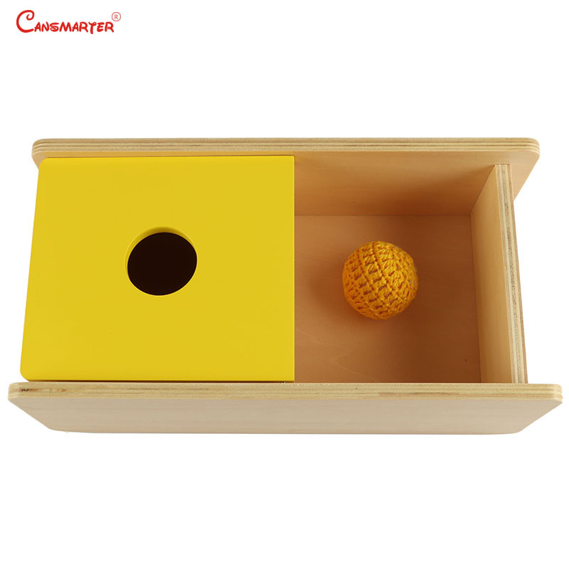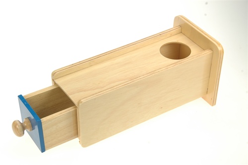 Karp palli ja kandikuosaga (box with tray and ball). Lisaks õpetab see palli haaramist ja eesmärgistatud lahti laskmist, et see kukuks karpi. Kõigepealt näita beebile ette, kuidas pall auku panna. Kui pall veereb välja, siis las ta ise upitab selle järele. Kui esialgu ei paku huvi, siis hiljem uuesti proovida. Isetegemise link siin. Kes tahab osta, siis müügil nt siin.